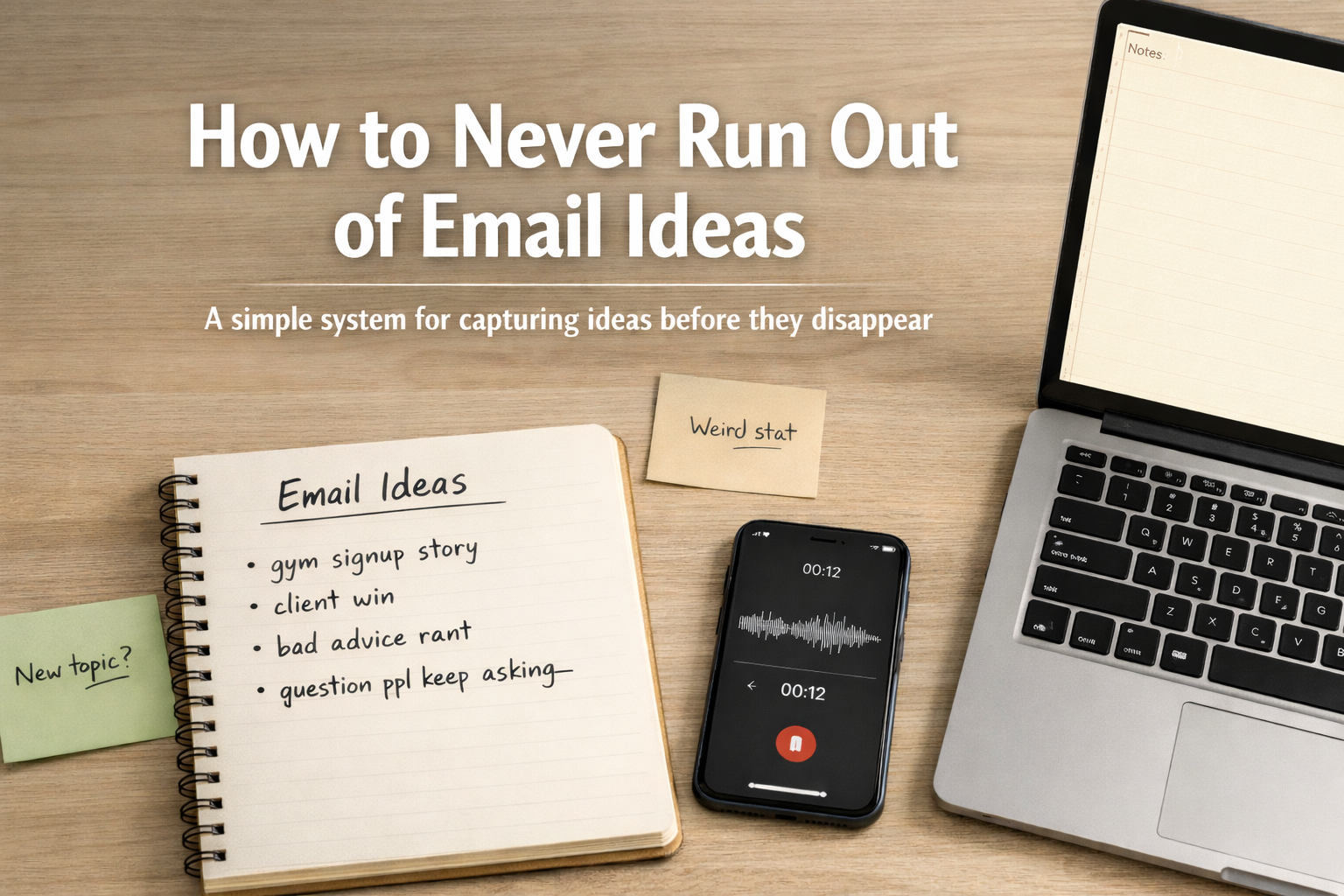 So today, I want to share the simplest system I know to never run out of email ideas again.